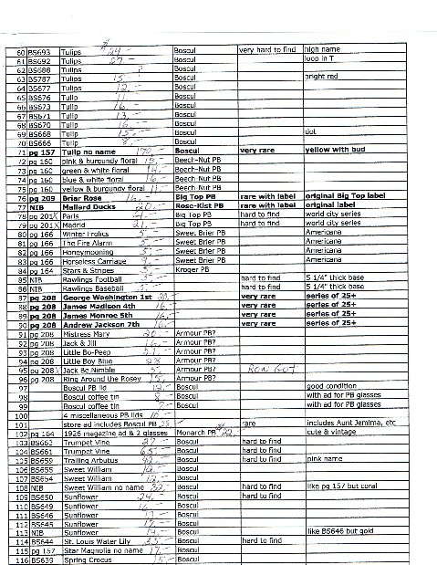 There was a 450 glass Peanut Butter Glasses auction in Willow Hill Pennslvania, Brindle Auctioneering in April 2017. PGCA member Donna Maxwell took notes on the glasses sold and prices realized. Pictures are in Collector Glass News #126.